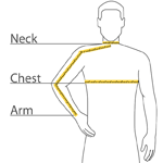 | Arm | 30 - 30 3/4 | 30 3/4 - 31 1/2 | 31 1/2 - 32 | 32 - 32 1/2 | 32 1/2 - 33 | 33 - 33 3/8 | 33 3/8 - 33 3/4 | 33 3/4 - 34 1/2 |