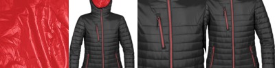 "Quilted comfort from hem to hood. Ultra-lightweight with a sleek snug fit and heat-trapping polyfill insulation. Elasticized cuffs and attached hood help retain core warmth, while an outer shell keeps you dry."